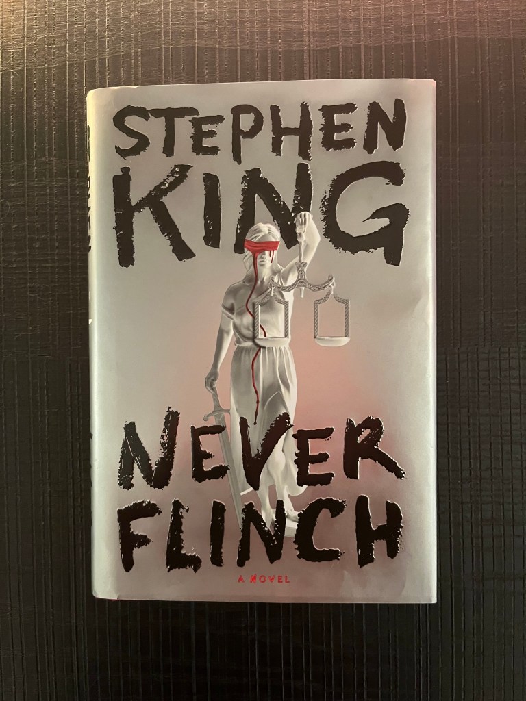 And 423 words later, you’re like okay, where’s the but? Give me a chance, gosh! Never Flinch is an exciting story full of intertwining narratives with not one but two (!) murderers on the loose, a police versus firefighters charity baseball game, the resurgence of a previously retired singer, wrongful deaths, wrongful convictions, anti-abortion lunatics, feminist speakers and the crowds they draw, and the prevailing question of who does the justice system really serve? And for the most part it works. King is the master of intertwining narratives—look at The Stand, It, 11/22/63, Desperation to name a few—and with Never Flinch, he proves he is still the master of his craft.